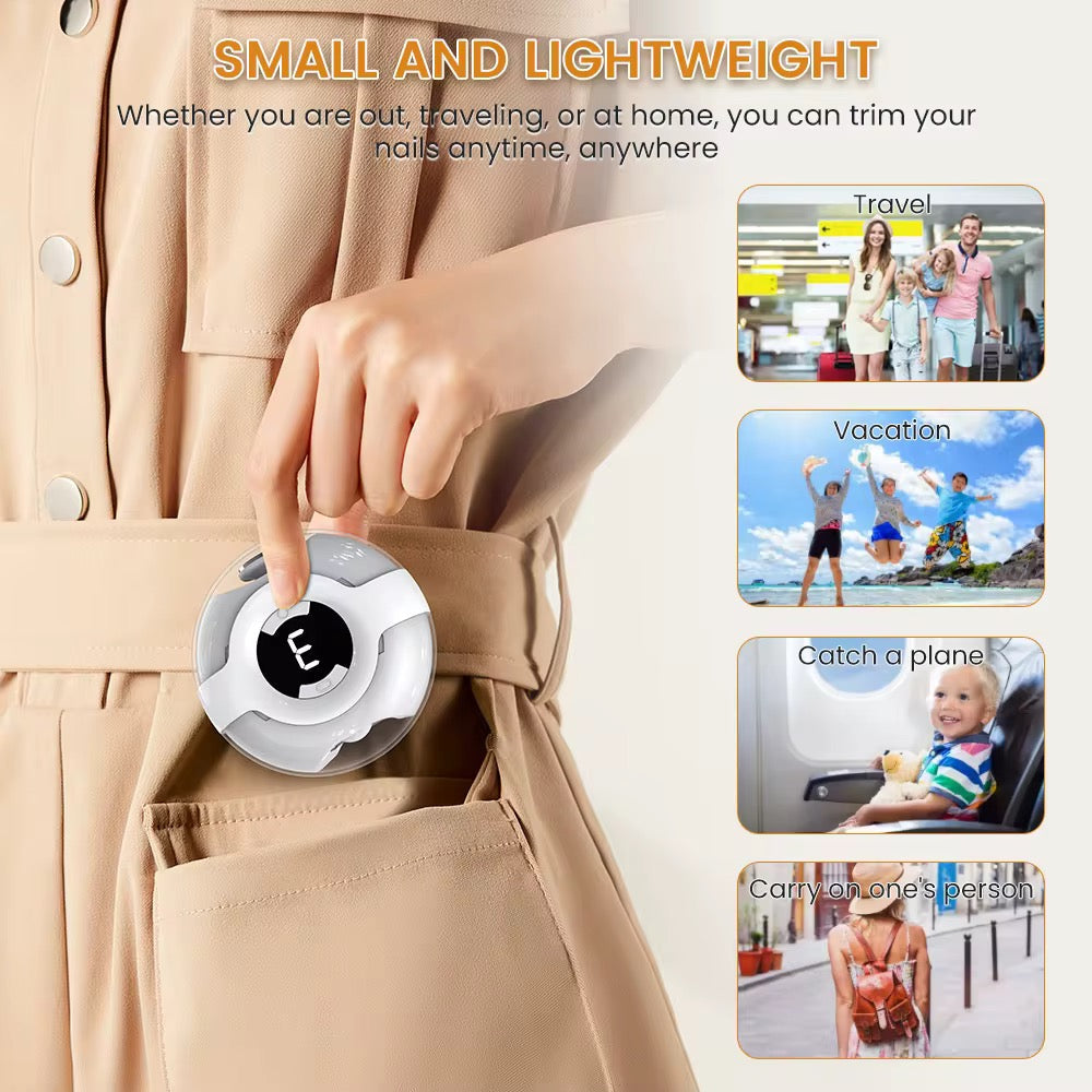 Den trådløse og automatiske neglefil er udviklet til babyer, børn og voksne og filer nænsomt i stedet for at klippe. Resultatet? Smukke, jævne negle – helt uden rifter, niveri eller tårer.